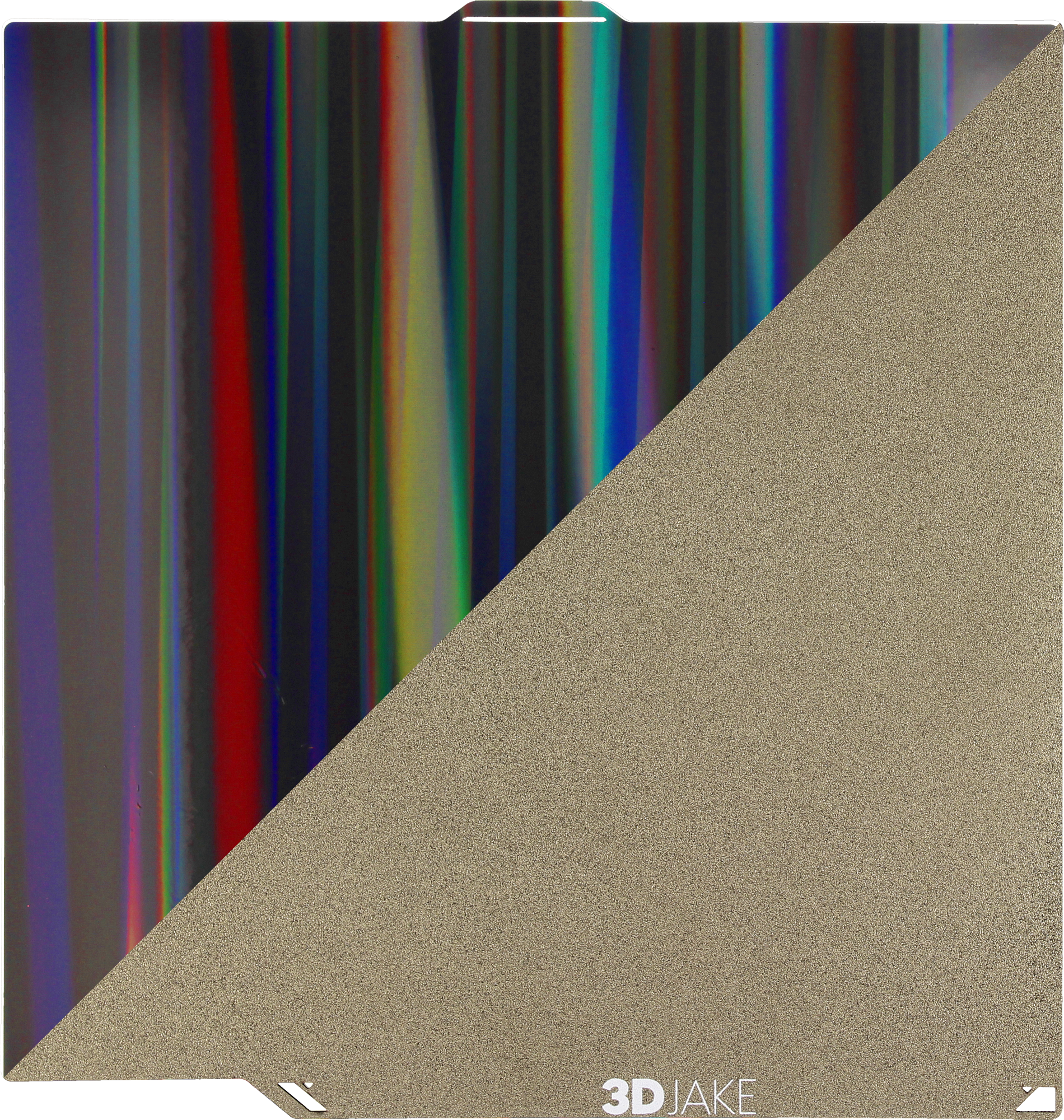 PET/PEI-byggplattan Aurora från 3DJAKE är en flexibel, dubbelsidigt belagd byggplatta med magnetisk bas. Den ena sidan av byggplattan är tillverkad av PET-material med ett Aurora-mönster, vilket ger de utskrivna objekten unika visuella effekter. Den andra sidan har en pulverlackerad PEI-beläggning för utmärkt vidhäftning och enkel borttagning av modellerna.