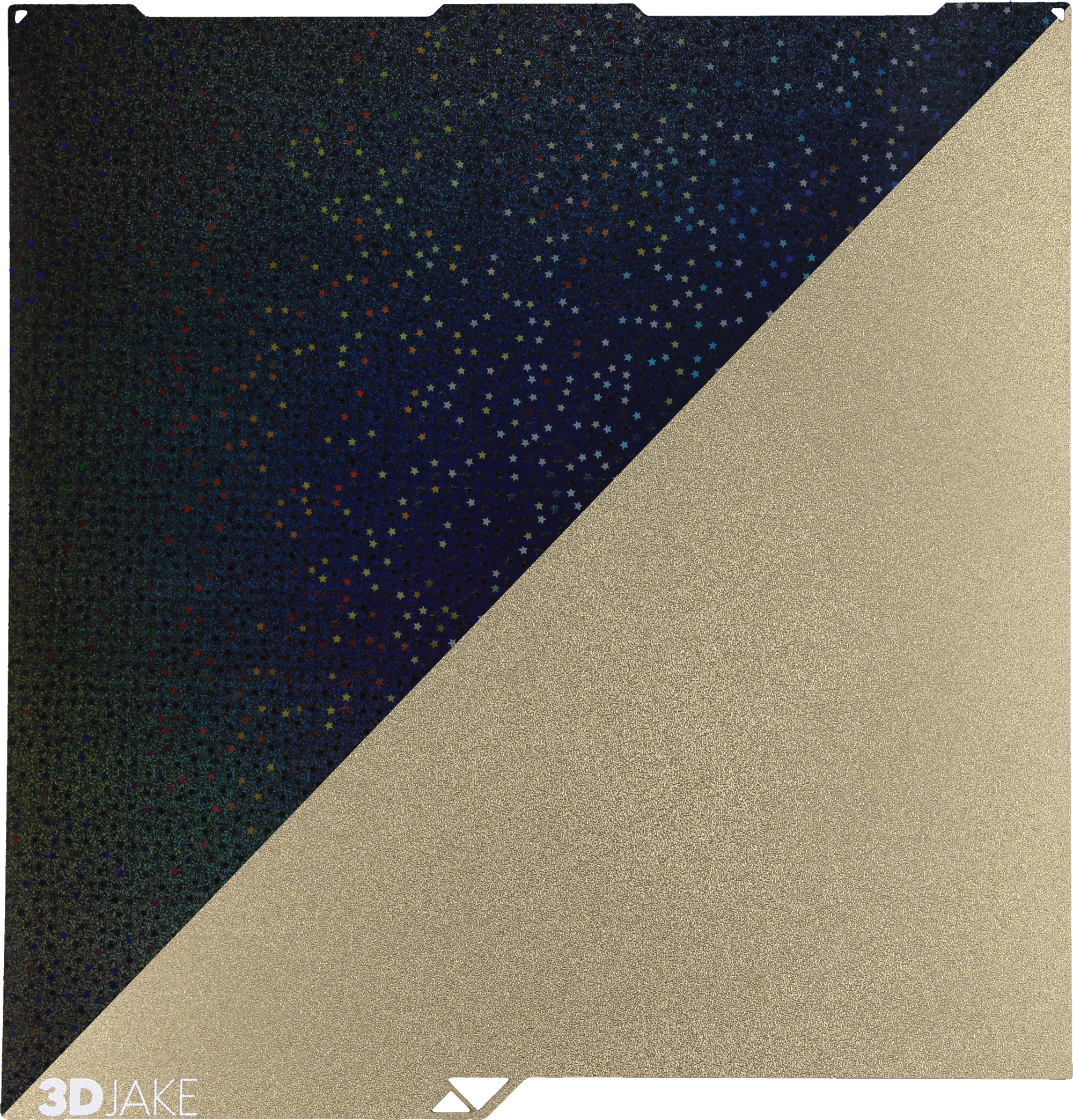 PET/PEI-byggplattan Magic från 3DJAKE är en flexibel, dubbelsidigt belagd byggplatta med magnetisk bas. Den ena sidan av byggplattan är tillverkad av PET-material med ett skimrande regnbågsmönster, vilket ger de utskrivna objekten unika visuella effekter. Den andra sidan har en pulverlackerad PEI-beläggning för utmärkt vidhäftning och enkel borttagning av modellerna.