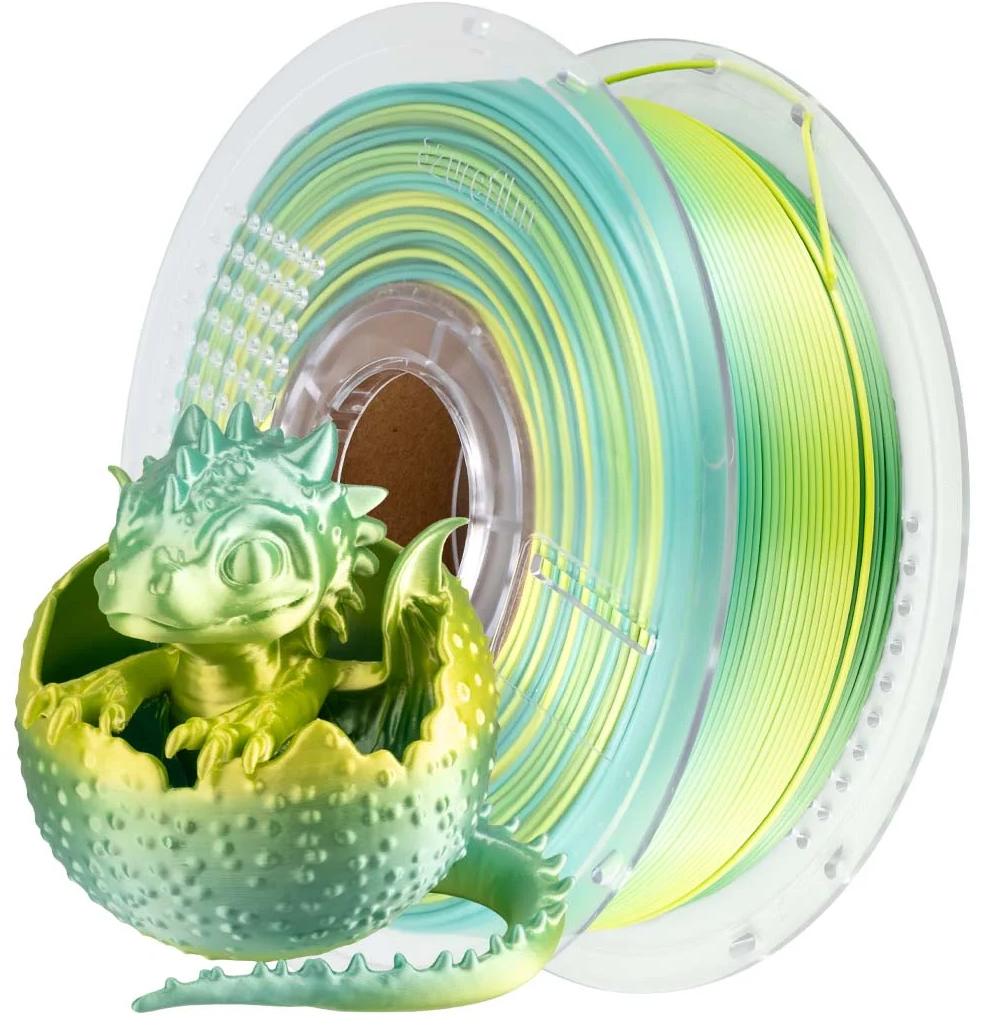 Tack vare den senaste co-extruderingstekniken kombinerar PLA Silk Multicolor två eller till och med tre färger i bara en filamentsträng. Detta skapar flödande färggradienter och unika skimmereffekter som förändras beroende på betraktningsvinkeln. Det gör varje tryck unikt, oavsett om det gäller vaser, figuriner, smycken eller dekorativa hemtillbehör.