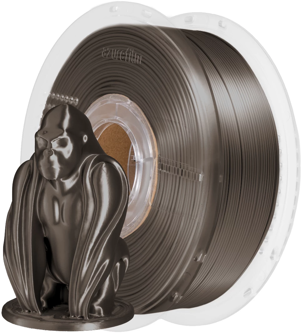 AzureFilm PLA Silk Unset-filamenten är en specialutgåva av den klassiska PLA Silk-serien från AzureFilm. De är tillverkade av 100% återvunnen PLA, som erhålls från överskottsmaterial under produktionen. Resultatet: Ett filament med alla fördelar som PLA Silk har - blanka, lätt transparenta ytor med ett silkesmjukt utseende som gör trycklagren nästan osynliga!