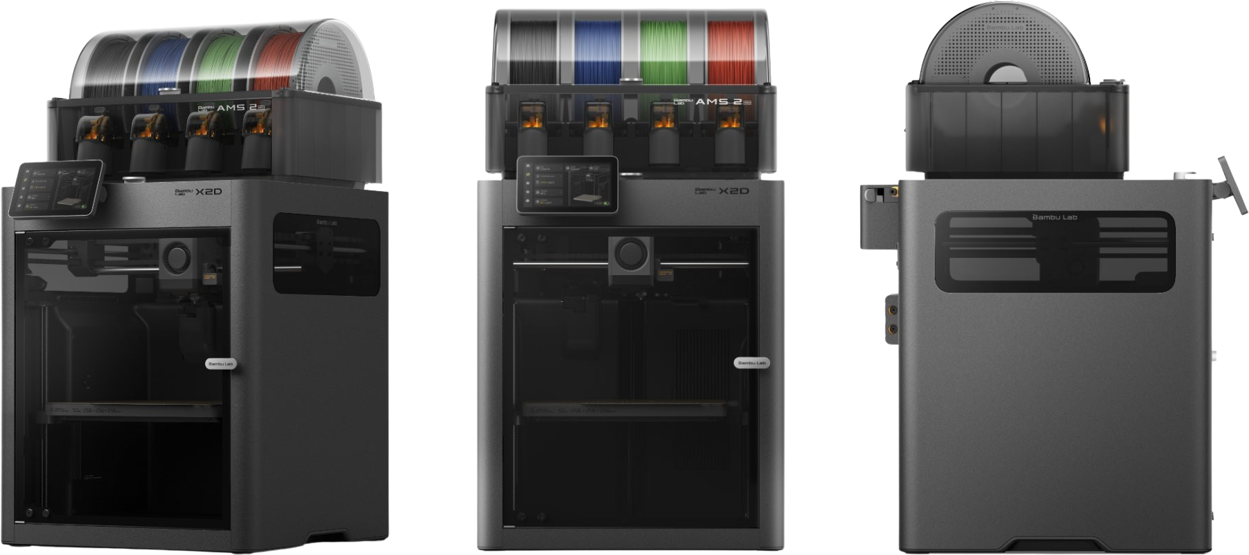 Bambu Lab X2D 3D-skrivare är nästa utvecklingssteg i Bambu Lab X-serien och är särskilt framtagen för exakt multi-material 3D-utskrift med stödstrukturer. Med sitt dual-extrudersystem, slutna uppvärmda byggkammare och intelligenta sensorer riktar sig X2D till dig som vill skapa högkvalitativa funktionella delar, komplexa geometrier och rena supportytor. I kombination med AMS 2 Pro möjliggör X2D dessutom automatiserad multi-material- och flerfärgsutskrift med smart filamentbyte och integrerad torkning.