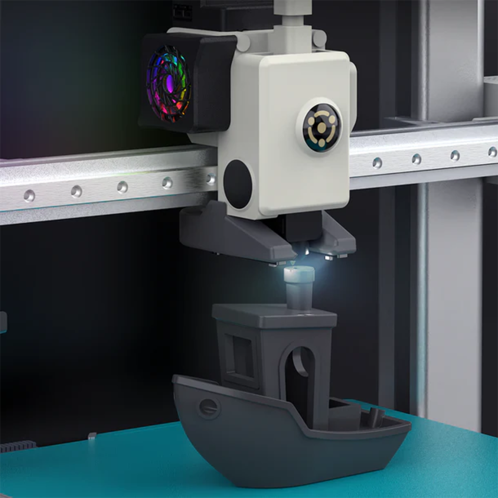 Ett separat ljussystem lyser upp utskriftsområdet optimalt. Du kan välja mellan synkroniserad RGB-effekt eller justerbart vitt ljus – perfekt för att följa första lagret och utskriftsförloppet med hög precision.