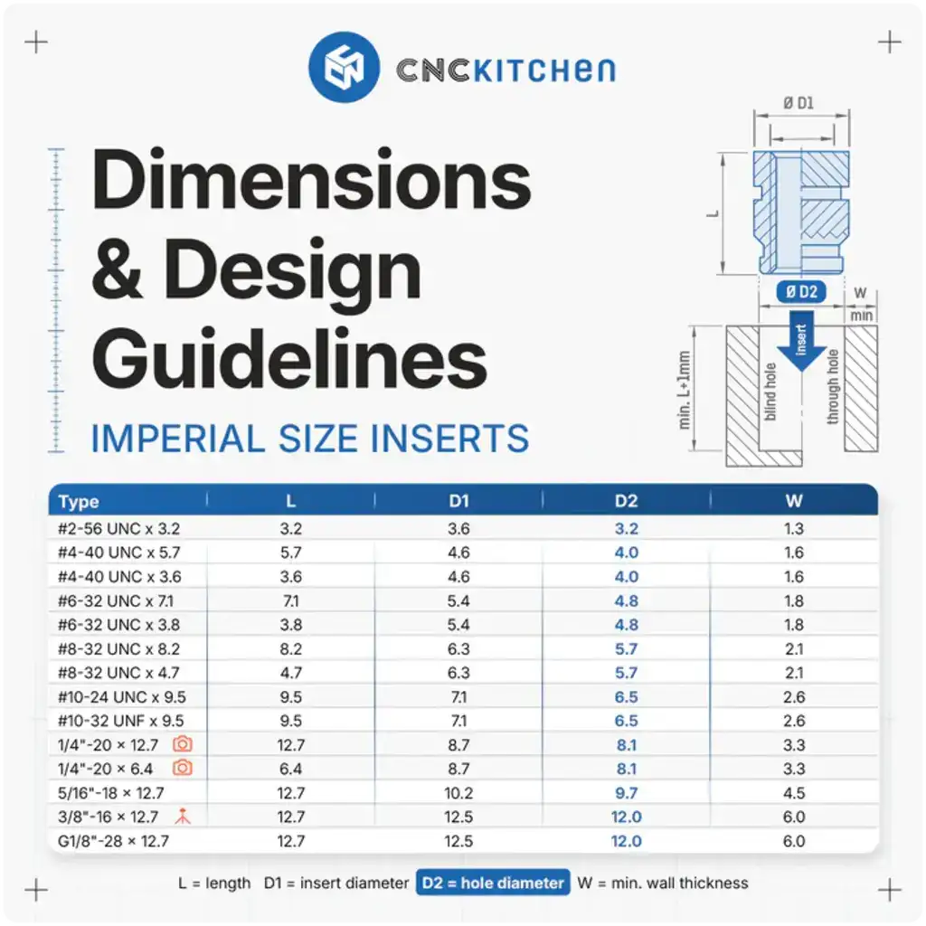 Tips: För maximal styrka bör du installera mässingsinsatserna vid en temperatur som är 10-20 °C högre än trycktemperaturen. CNC Kitchen rekommenderar också att endast smälta 90% av gänginsatserna med en lödkolv - resten kan monteras i komponenten med hjälp av verktyg.