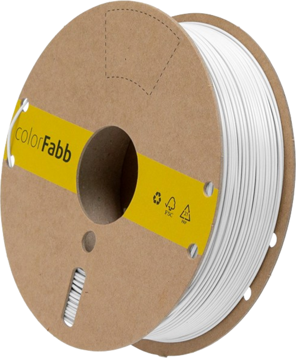Filamentet levereras på en pappspole av återvunnen kartong för att ytterligare minimera användningen av engångsplast.