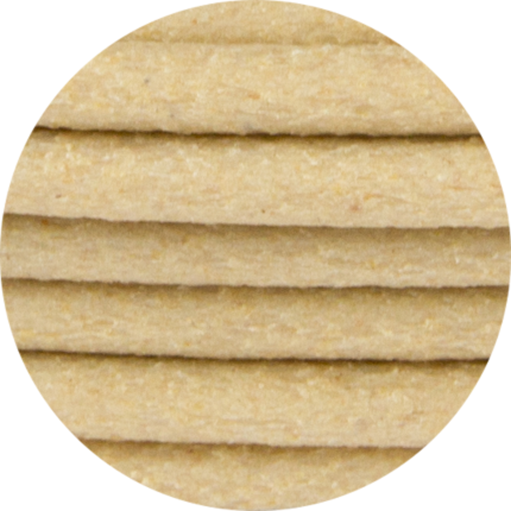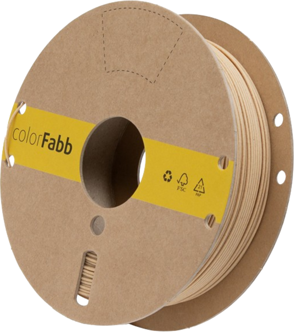 Cirka 70% colorFabb PLA / PHA och 30% återvunnet träfibrer finns i filamentet.