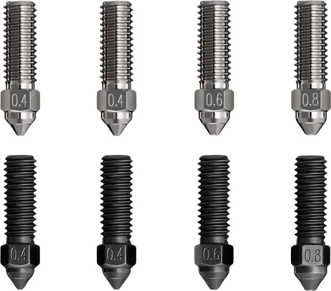 Detta munstyckesset från Creality har speciellt utvecklats för K1 och K1 Max (2023)* 3D-skrivare. Setet innehåller två typer av munstycken: