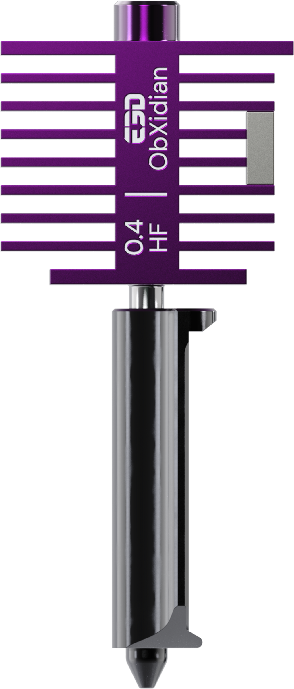 Med ObXidian™-teknologin får du munstycken med betydligt längre livslängd. Materialet är många gånger hårdare än konventionellt härdat stål och motstår slitage även vid utskrift med mycket abrasiva filament under många driftstimmar.