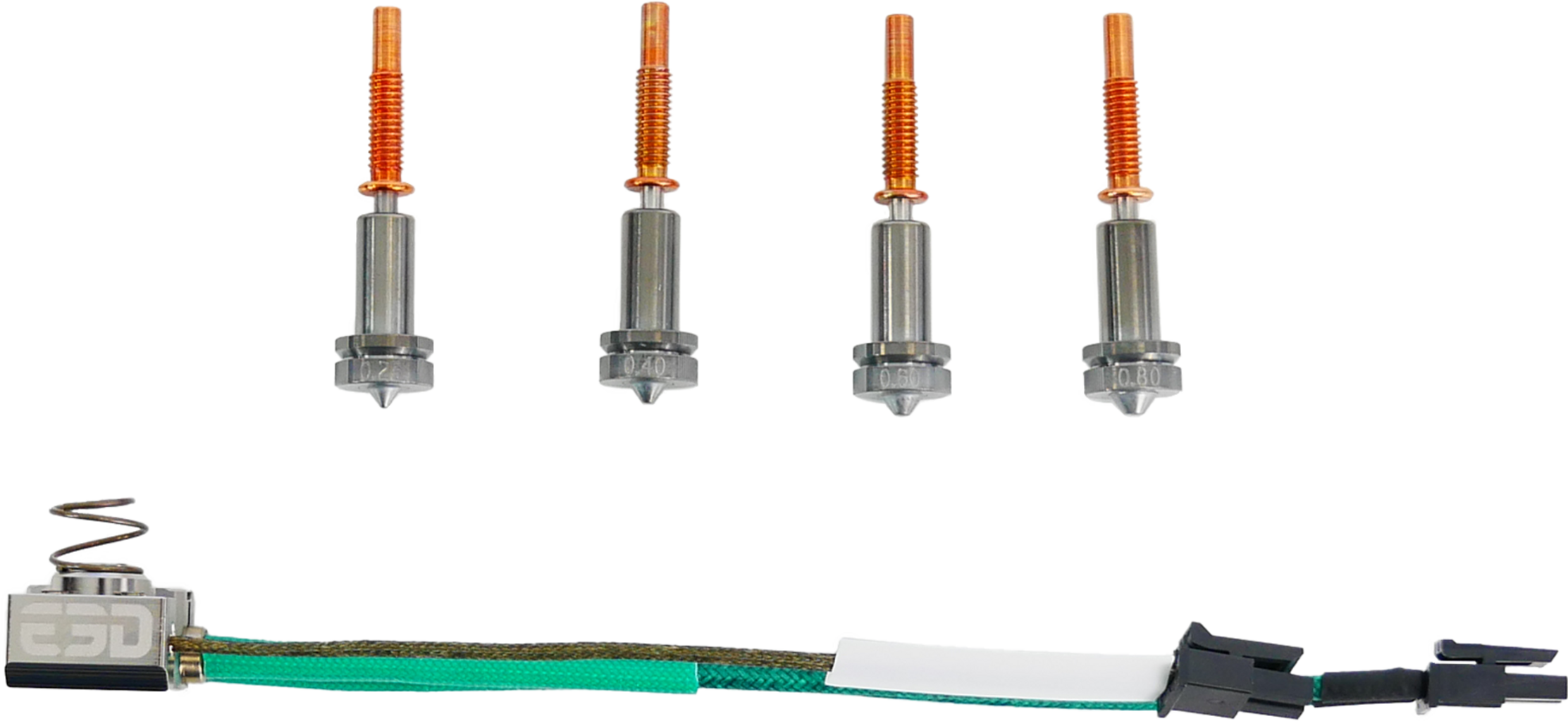 Hotside-satsen är också utrustad med ett högtemperaturvärmeblock tillverkat av pläterad koppar och en högprecisionsvärmepatron (för temperaturer upp till 400 °C). Det spännande: Det är upp till dig vilken högtemperaturgivare du väljer! Designa din Revo hotend efter din individuella smak och optimera den efter dina personliga 3D-utskriftsbehov.