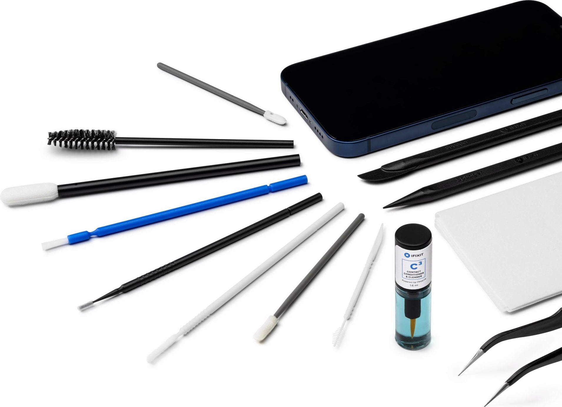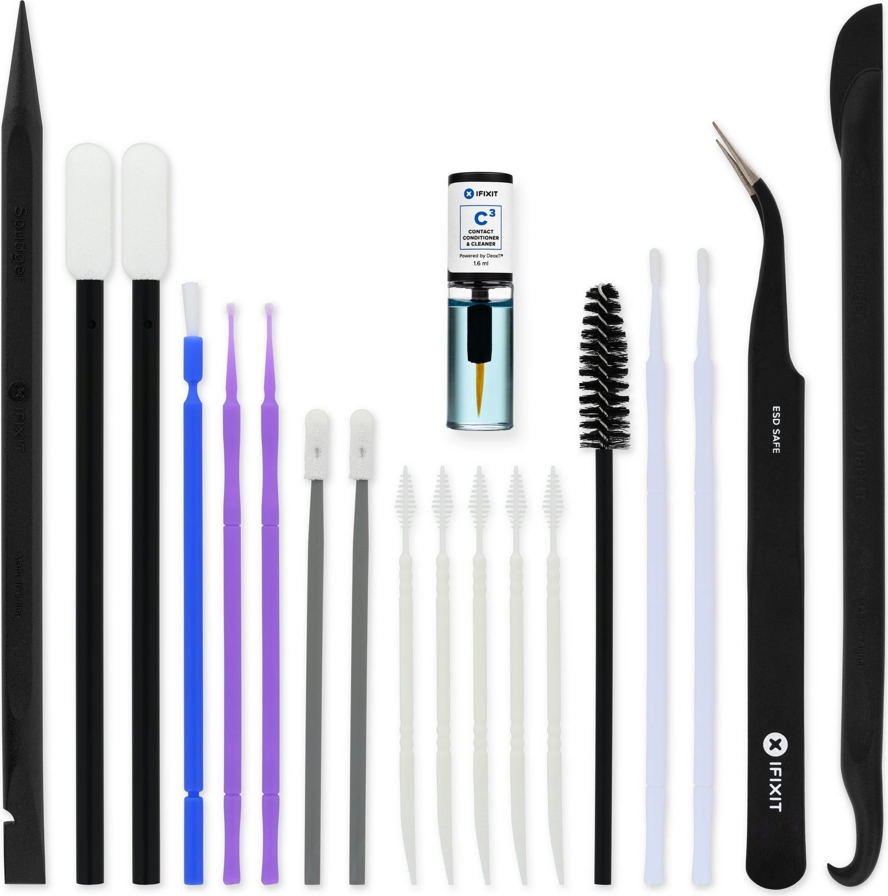 Damm, ludd och smuts gömmer sig gärna i de minsta hörnen av dina enheter – i portar, springor eller högtalgaller. iFixit Precision Cleaning Kit är framtaget för just detta: en noggrann och säker rengöring av känslig elektronik.