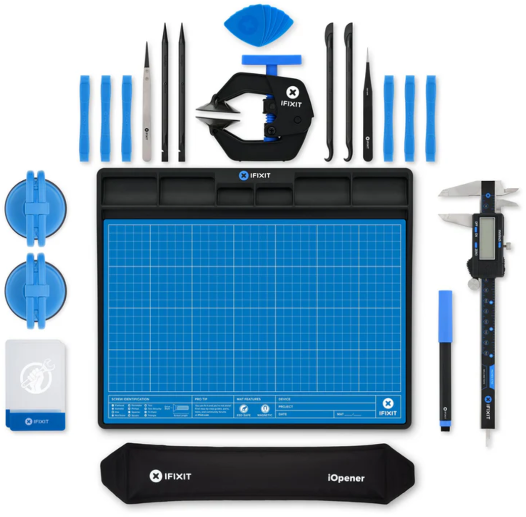 iFixit Pro Tech Demontage Kit är utformat för att säkert öppna och demontera elektroniska enheter som behöver repareras. Tillverkat av robust men skonsam plast gör verktygen det möjligt att arbeta precist och repfritt, utan att skada komponenter, höljen eller andra känsliga delar.
