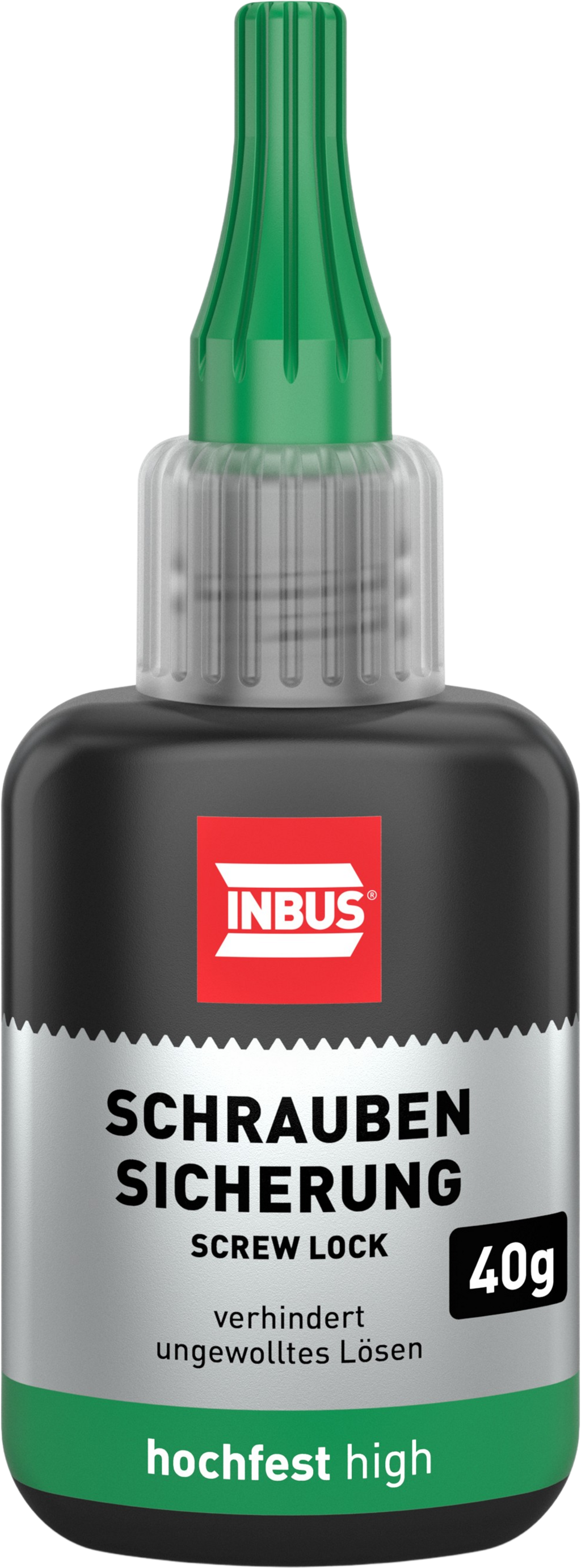 INBUS Gängsäkring – hög hållfasthet ger en extremt tålig skruvförbindelse och förhindrar pålitligt att skruvar lossnar, även vid starka vibrationer eller höga mekaniska påfrestningar. Samtidigt skyddar gängsäkringen mot inträngande vatten och säkerställer en varaktigt tät och säker förbindelse.