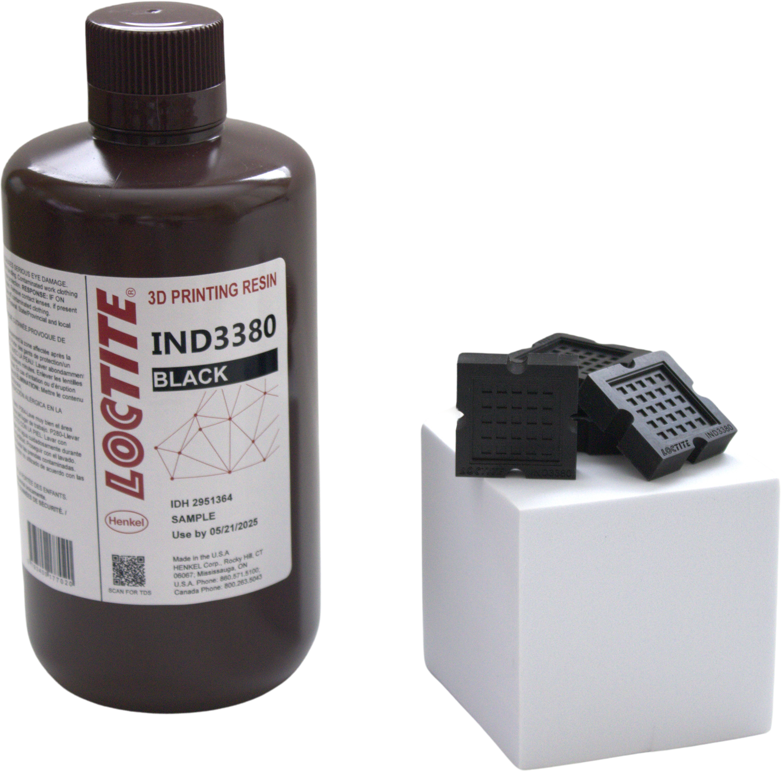 LOCTITE 3D IND3380 är ett högtemperaturbeständigt harts med en HDT på 190°C som har egenskaper för elektrostatisk urladdning (ESD) och hög styvhet. Med sin släta ytfinish och utmärkta kemikaliebeständighet är detta ESD-harts lämpligt för utskrift av elektroniska enheter och delar.