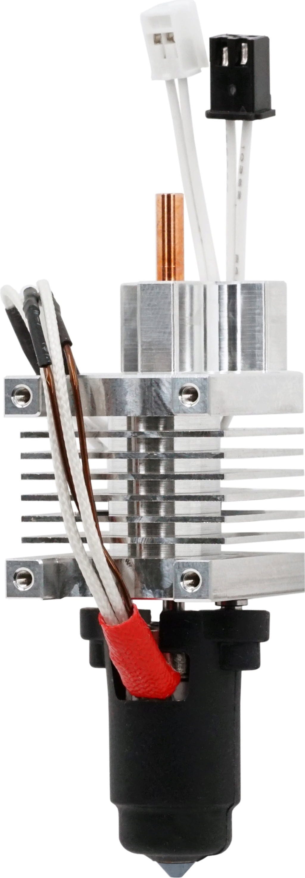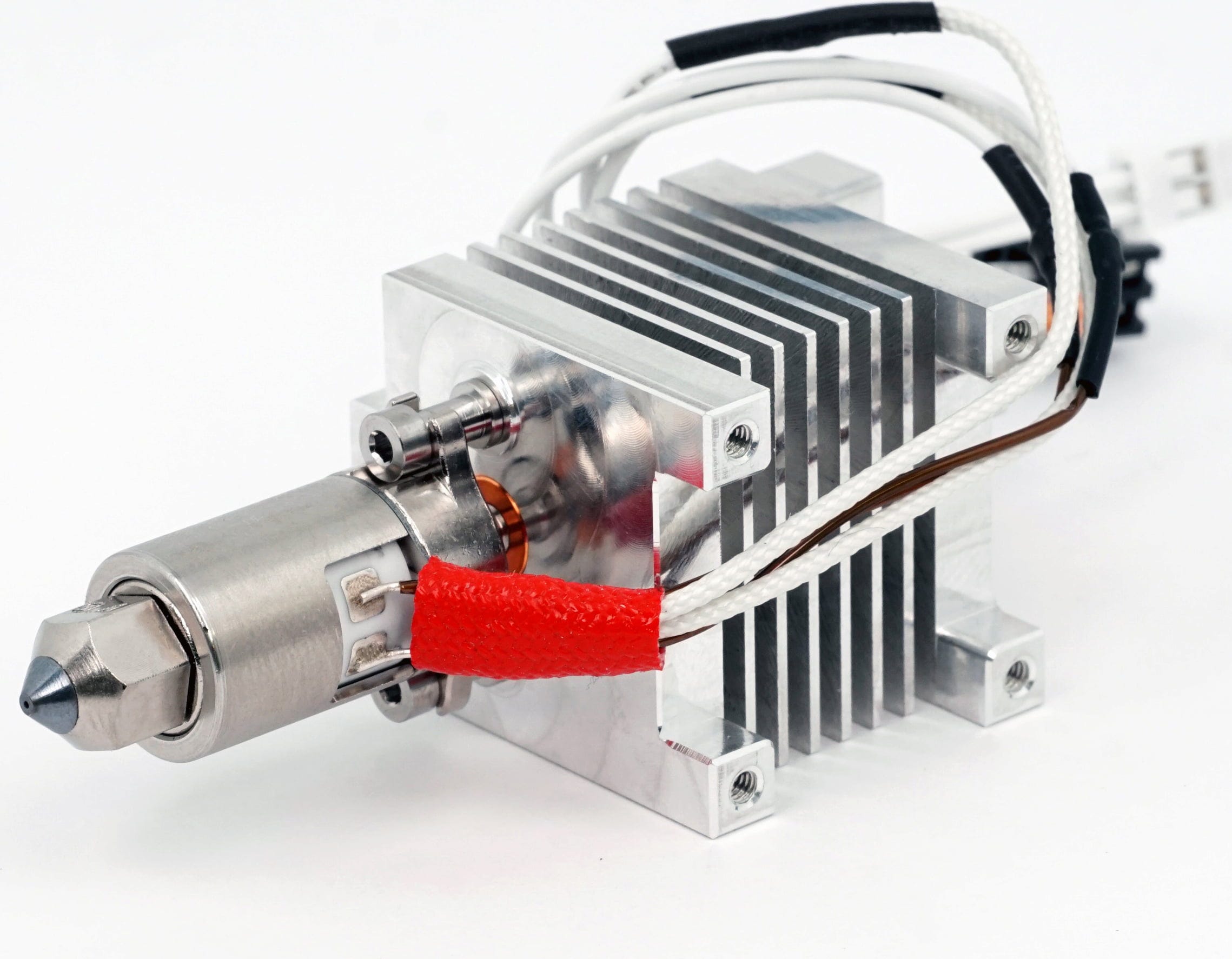 Den slitstarka konstruktionen i helmetall gör att hotendet klarar av de flesta filamenttyper för 3D-utskrift.