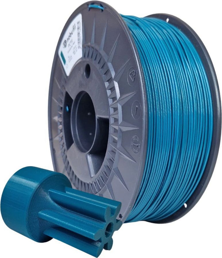 PCTG från Nobufil är en filament tillverkad av återvunnen plast som uppstår som produktionsavfall vid industriell bearbetning. Jämfört med PETG-filament kännetecknas denna polymer av högre slaghållfasthet, vilket gör den lämplig för tillverkning av mekaniskt belastade komponenter.