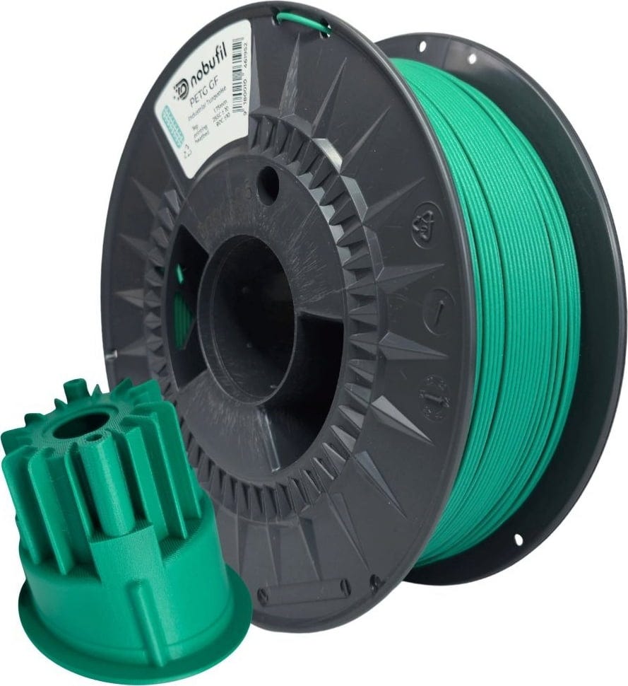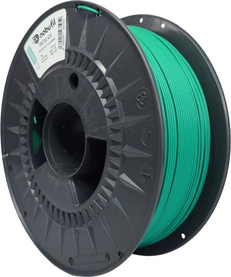 nobufil PETG GF är ett PETG-filament med 10 % glasfiberförstärkning som tillverkas av återvunnet industriavfall från Europa. Tillsatsen av glasfiber ger materialet betydligt högre styvhet, hållfasthet och måttnoggrannhet, vilket gör det väl lämpat för tekniska och mekaniskt belastade komponenter.