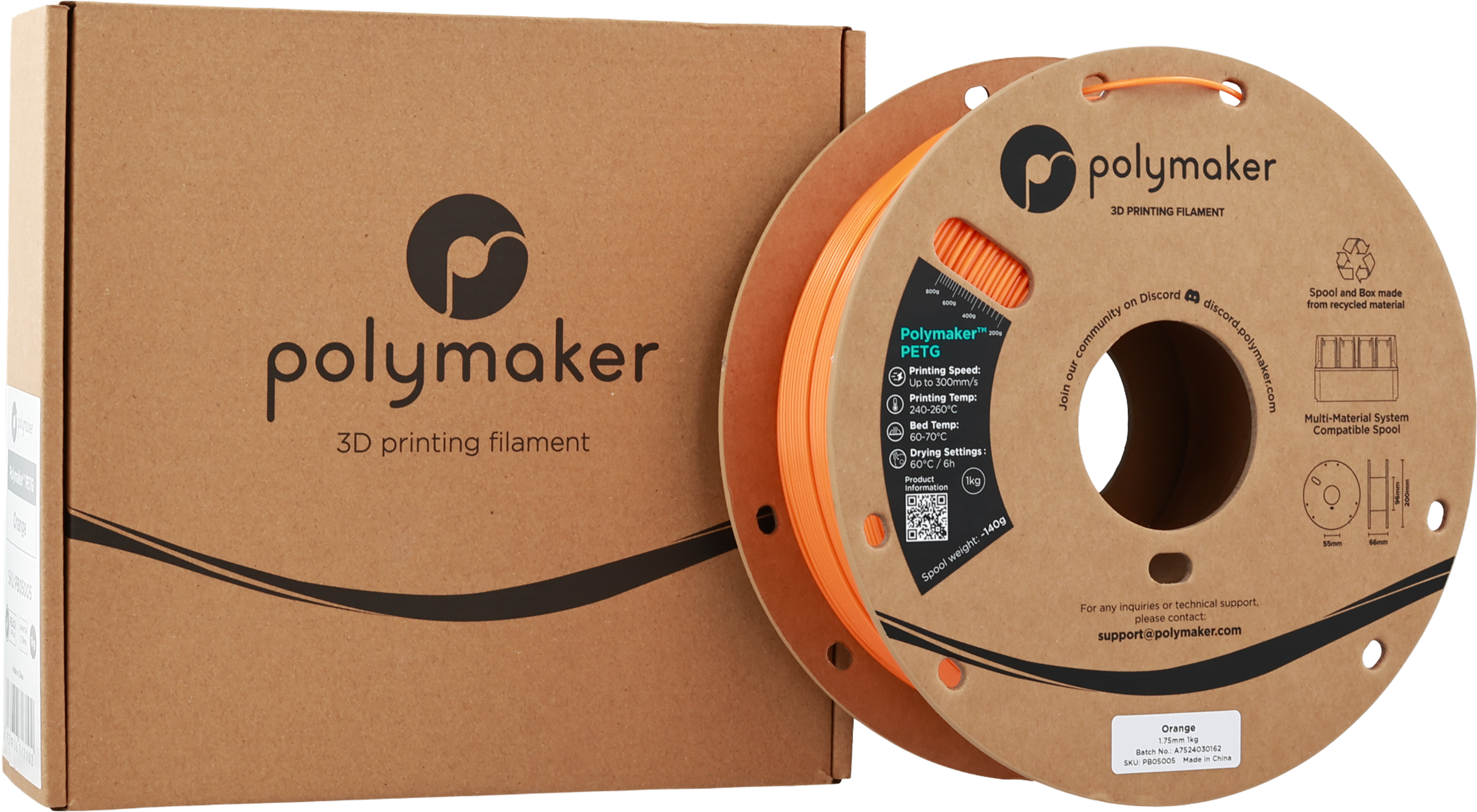 Tips: Polymaker PETG kan skrivas ut utan inbyggt hölje och är fullt kompatibelt med AMS och andra multimaterialsystem. För rena färgväxlingar och tillförlitlig filamenthantering.