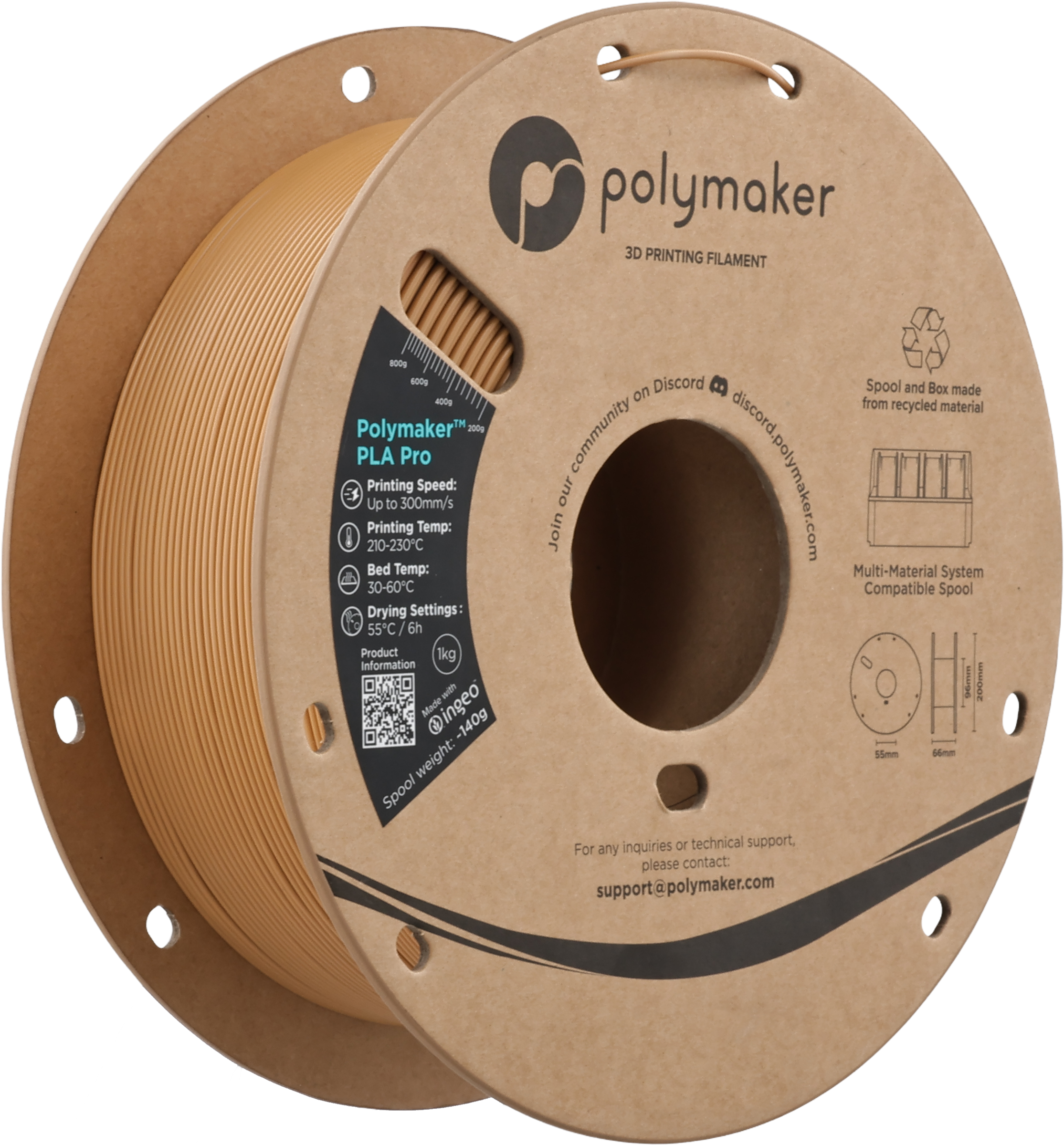 Oavsett om du är nybörjare, maker eller professionell användare: med sin starka lagervidhäftning, exakta detaljåtergivning och breda materialkompatibilitet är Polymaker™ PLA Pro ett perfekt val för dig som söker ett pålitligt, mångsidigt och kraftfullt PLA-filament för 3D-utskrift.