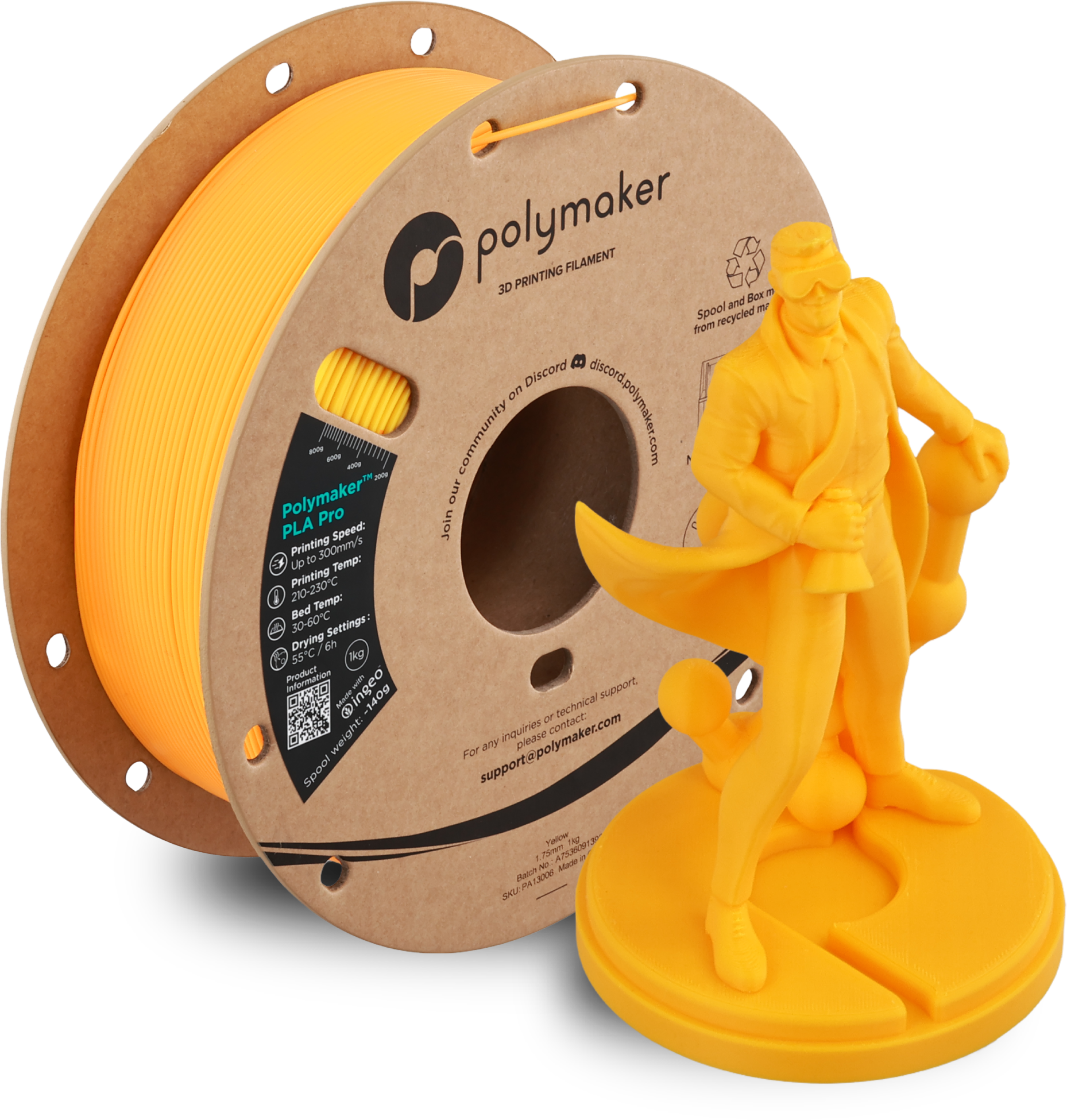 Oavsett om du är nybörjare, maker eller professionell användare: med sin starka lagervidhäftning, exakta detaljåtergivning och breda materialkompatibilitet är Polymaker™ PLA Pro ett perfekt val för dig som söker ett pålitligt, mångsidigt och kraftfullt PLA-filament för 3D-utskrift.