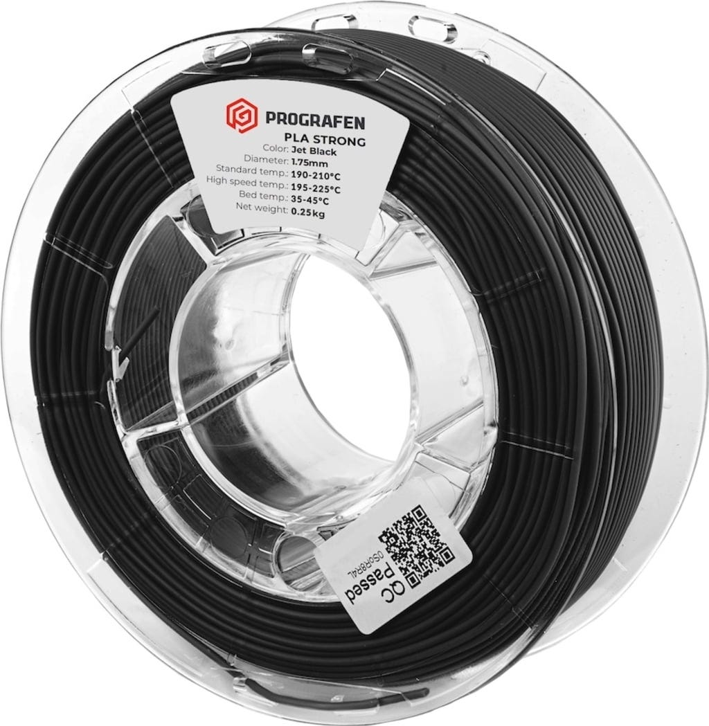 Prografen PLA Graphene Strong är nästa generations filament: tillverkad av en biologiskt nedbrytbar PLA-bas och berikad med 5 % grafenflingor (EFG), den erbjuder exceptionell mekanisk styrka, nötningsbeständighet och flexibilitet. Det innovativa materialet möjliggör ultrasnabb utskrift med imponerande precision, vilket gör den perfekt för krävande projekt där kvalitet och effektivitet kommer i första hand.