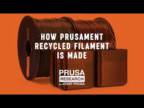 Prusa Prusament PETG Recycled är ett internt producerat filament som består till 100 % av återvunnet Prusament PETG. Materialet tillverkas av strimlade filament som inte klarade den interna kvalitetskontrollen, men som fortfarande håller fullgod teknisk kvalitet. Därför får varje batch en unik och lätt varierande färgton.