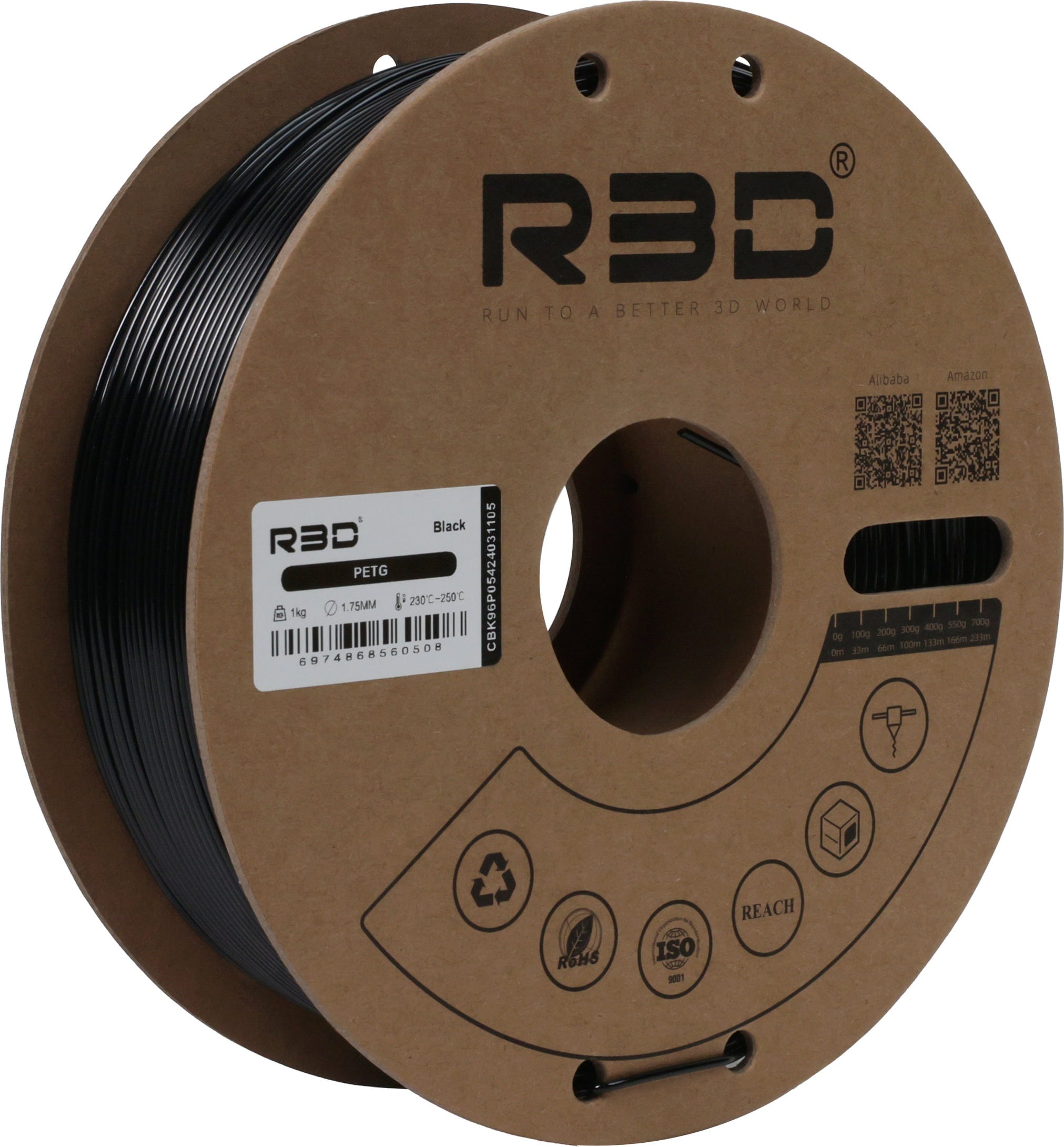 R3D PETG Black, 1.75 mm / 1000 g