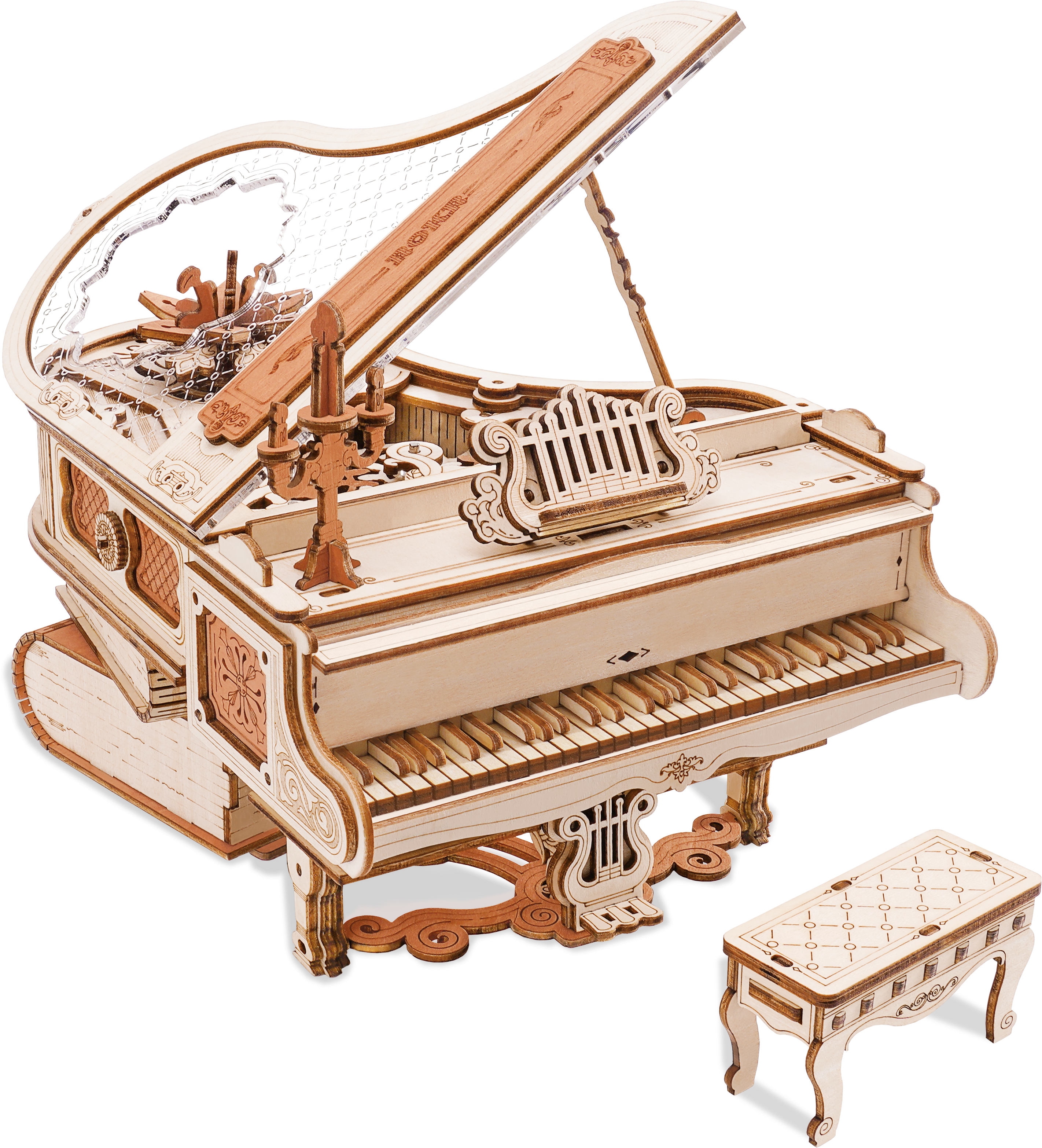Vissa melodier hör man inte bara – man bygger dem. ROKR Magic Piano är ett unikt 3D träpussel som väcker en detaljrik flygel till liv – placerad på en stapel antika böcker och omgiven av fin mekanik, musik och små magiska inslag. Redan under byggandet känns det som att du sätter samman en scen ur en gammal saga.