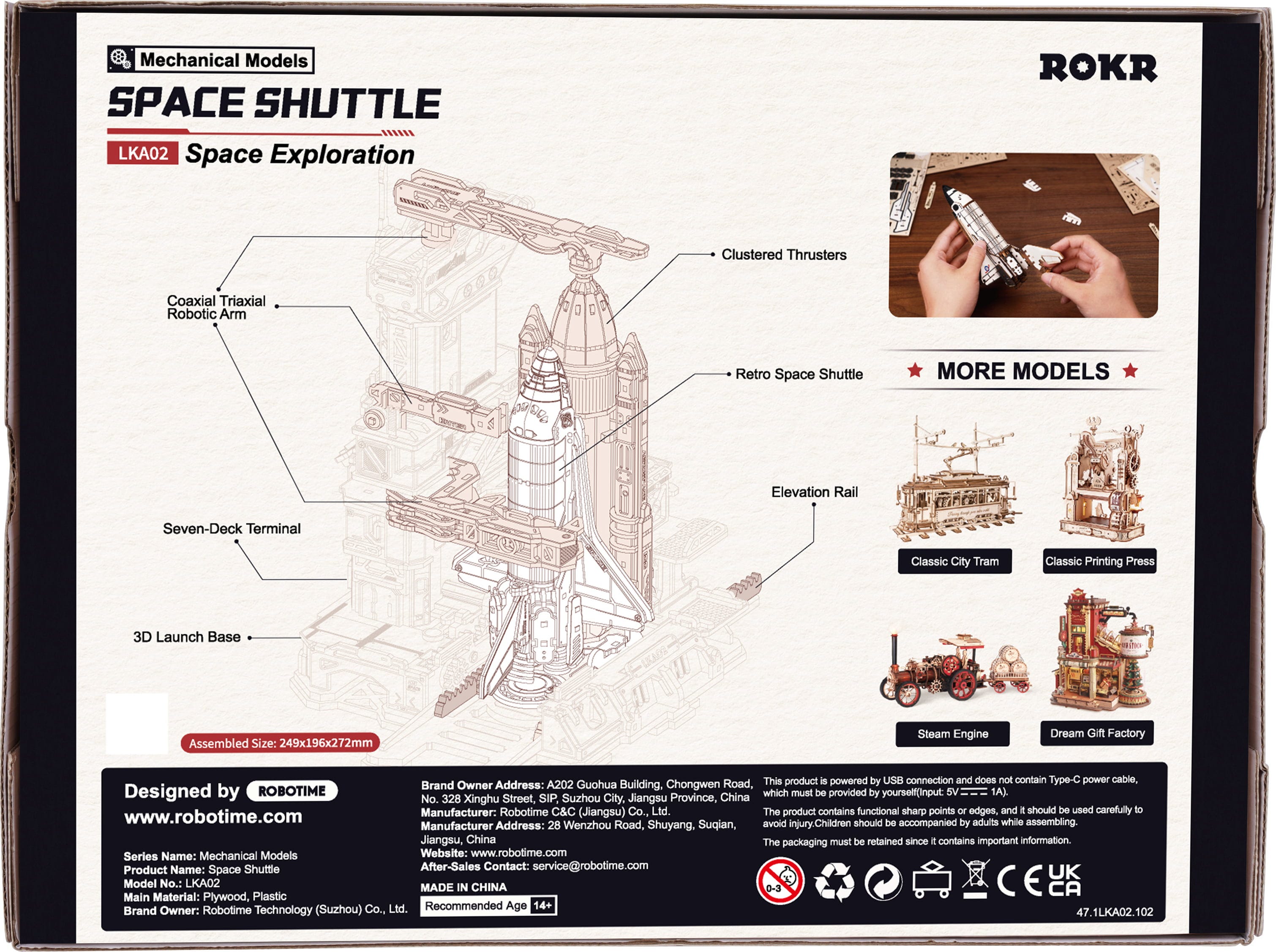 T-10, T-9, T-8 … Med ROKR Space Shuttle bygger du inte bara en raket – du iscensätter en uppskjutning. Detta avancerade 3D pussel återskapar den ikoniska shuttle-eran hemma hos dig och visar en komplett startsekvens: från horisontellt placerad orbiter till upprest startposition redo för färd mot rymden.