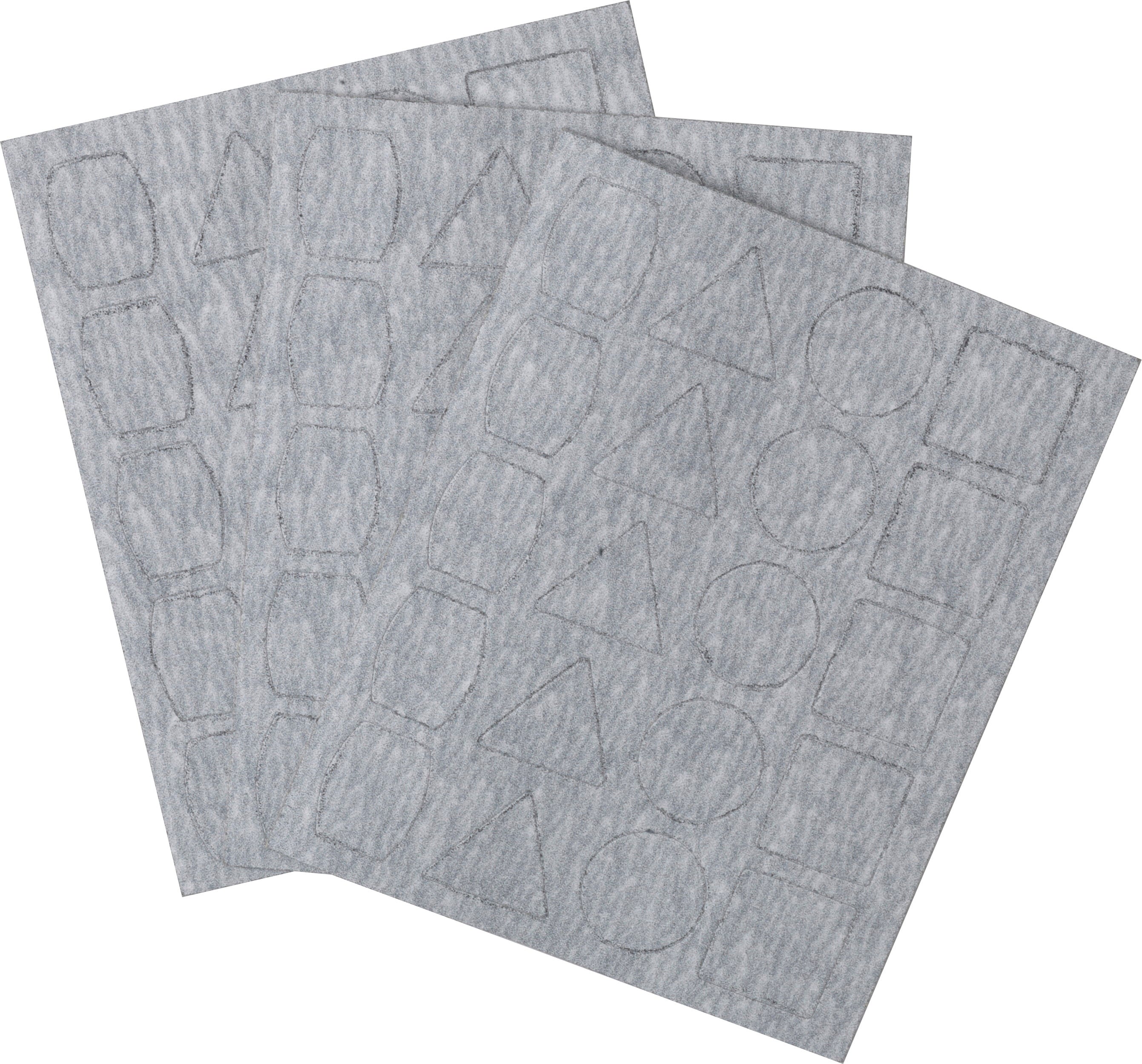 Proxxons självhäftande slippapper är specialanpassat för penschleifer PS 13. Setet innehåller tre ark med vardera 20 självhäftande slipblad i olika former – perfekt för snabb byte och flexibel användning.