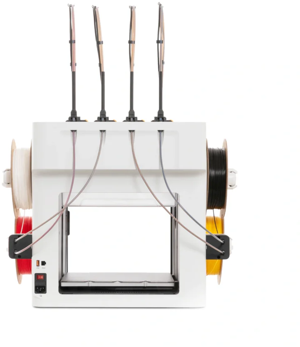 Flerfärgs 3D-skrivare med fyra verktygshuvuden för automatiska materialbyten