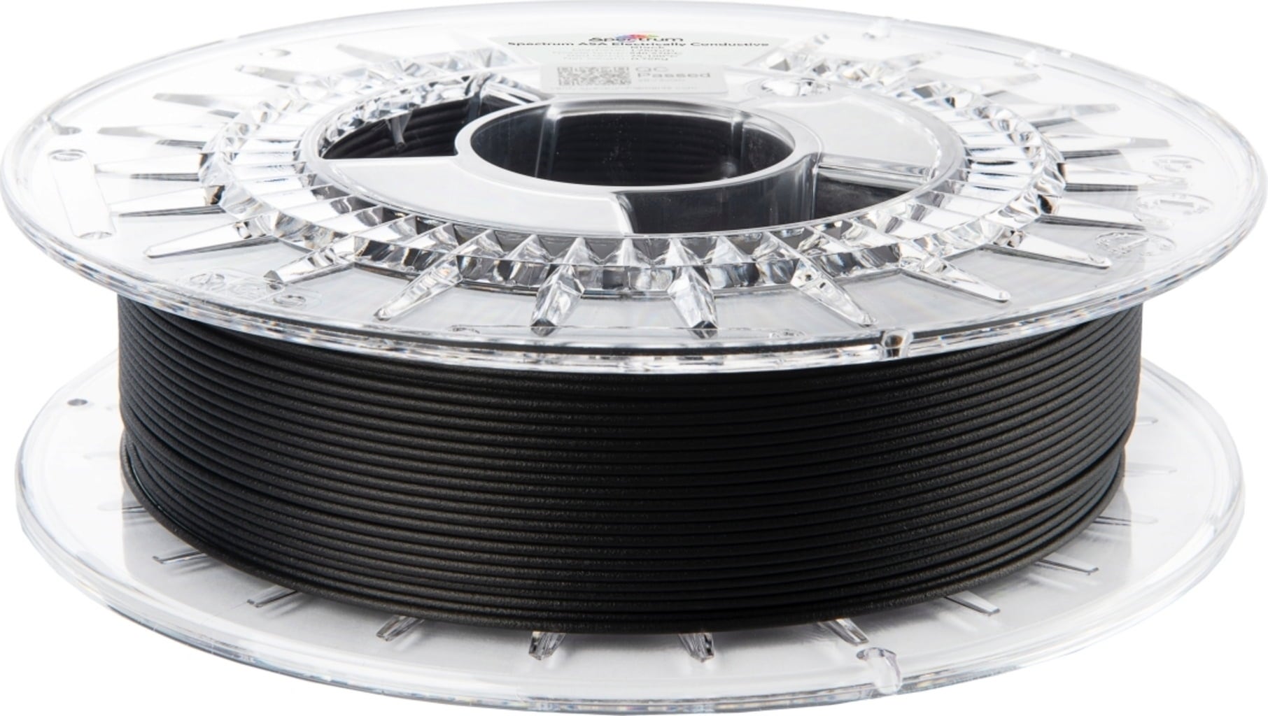 Spectrum ASA Electrically Conductive är ett elektriskt ledande specialfilament baserat på ett robust ASA-polymer, berikat med kolnanorör (CNT). Dessa ger ett mycket lågt ytresistansvärde på ca 40 Ω, vilket gör materialet perfekt för applikationer där kontrollerad elektrisk ledningsförmåga är avgörande.