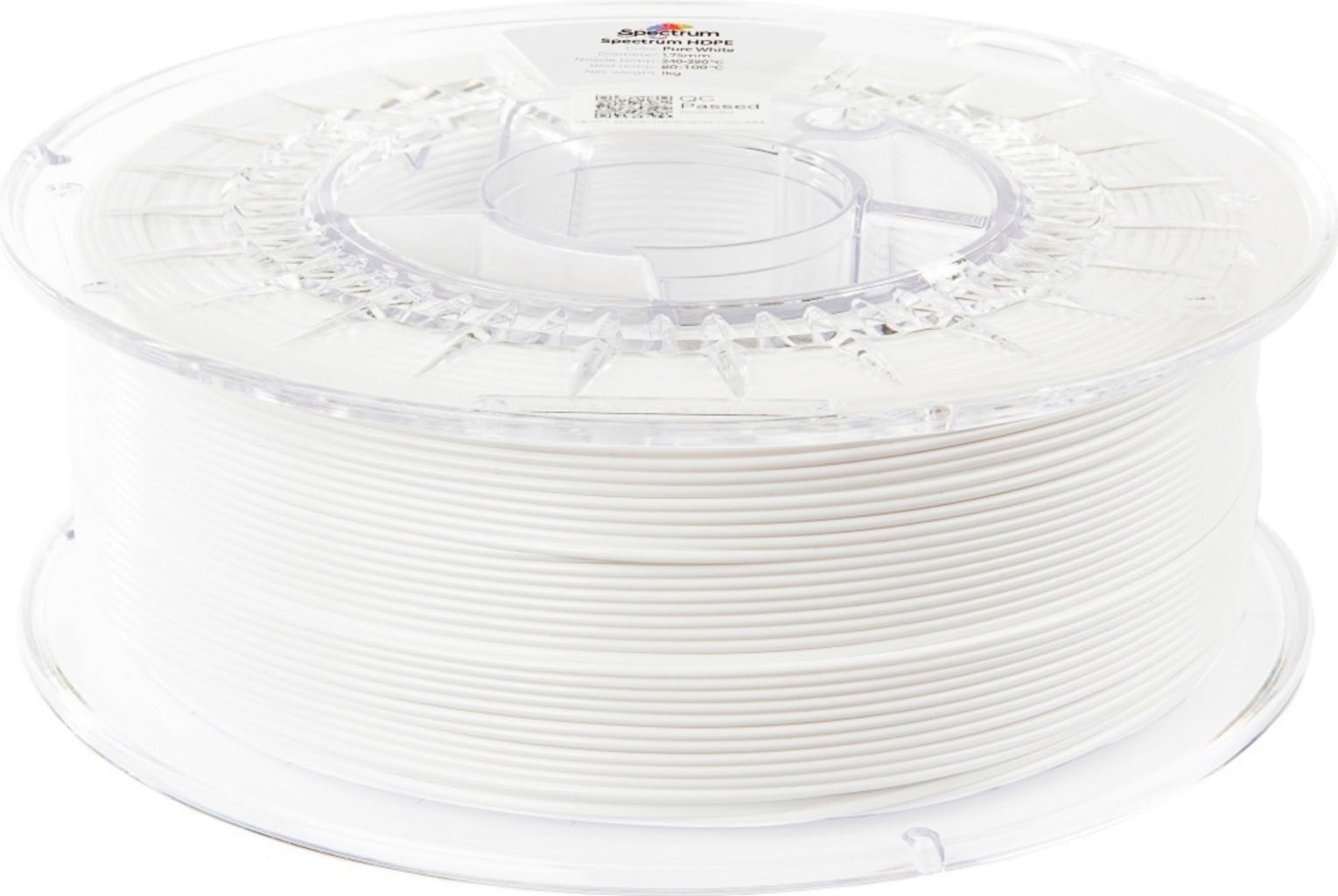 Spectrum HDPE är ett av världens första HDPE-filament med en innovativ low-warp-formulering. Polyeten med hög densitet har traditionellt varit svårt att skriva ut. men Spectrum har omdefinierat materialet från grunden! Resultatet är ett tekniskt högpresterande filament som är extremt slitstarkt, kemikalieresistent och samtidigt förvånansvärt lätt att arbeta med.