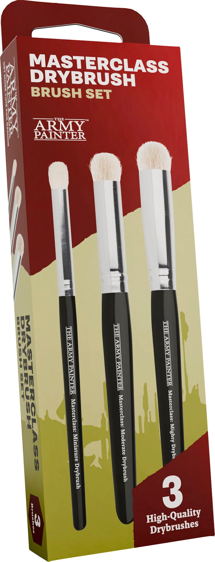 Masterclass Drybrush Set från The Army Painter tar dina miniatyrer och fantasivärldar till en helt ny nivå. Setet innehåller tre högkvalitativa borstar med mjuka gethårsborst som uppnår en mängd olika effekter med sin rundade kupolform . Det ergonomiska, runda handtaget ligger bekvämt i handen och gör det möjligt att måla under lång tid.