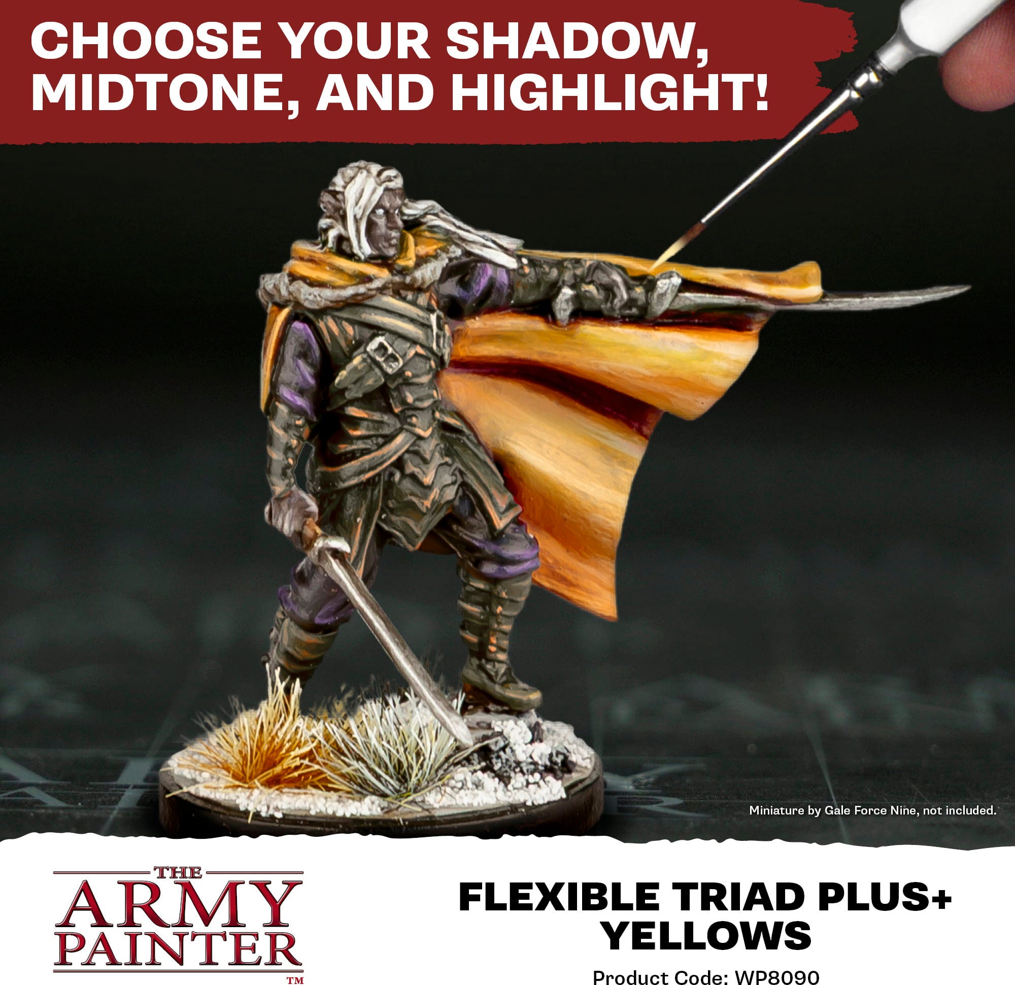 Med Flexible Colour Triad System har The Army Painter tagit fram ett smart koncept som förenklar färgblandning och färgval vid målning av miniatyrer. Varje triad består av sex kulörer, som alla är baserade på en gemensam baskulör. Färgerna sträcker sig från mycket mörkt till mycket ljust och skapar en harmonisk färgpalett.