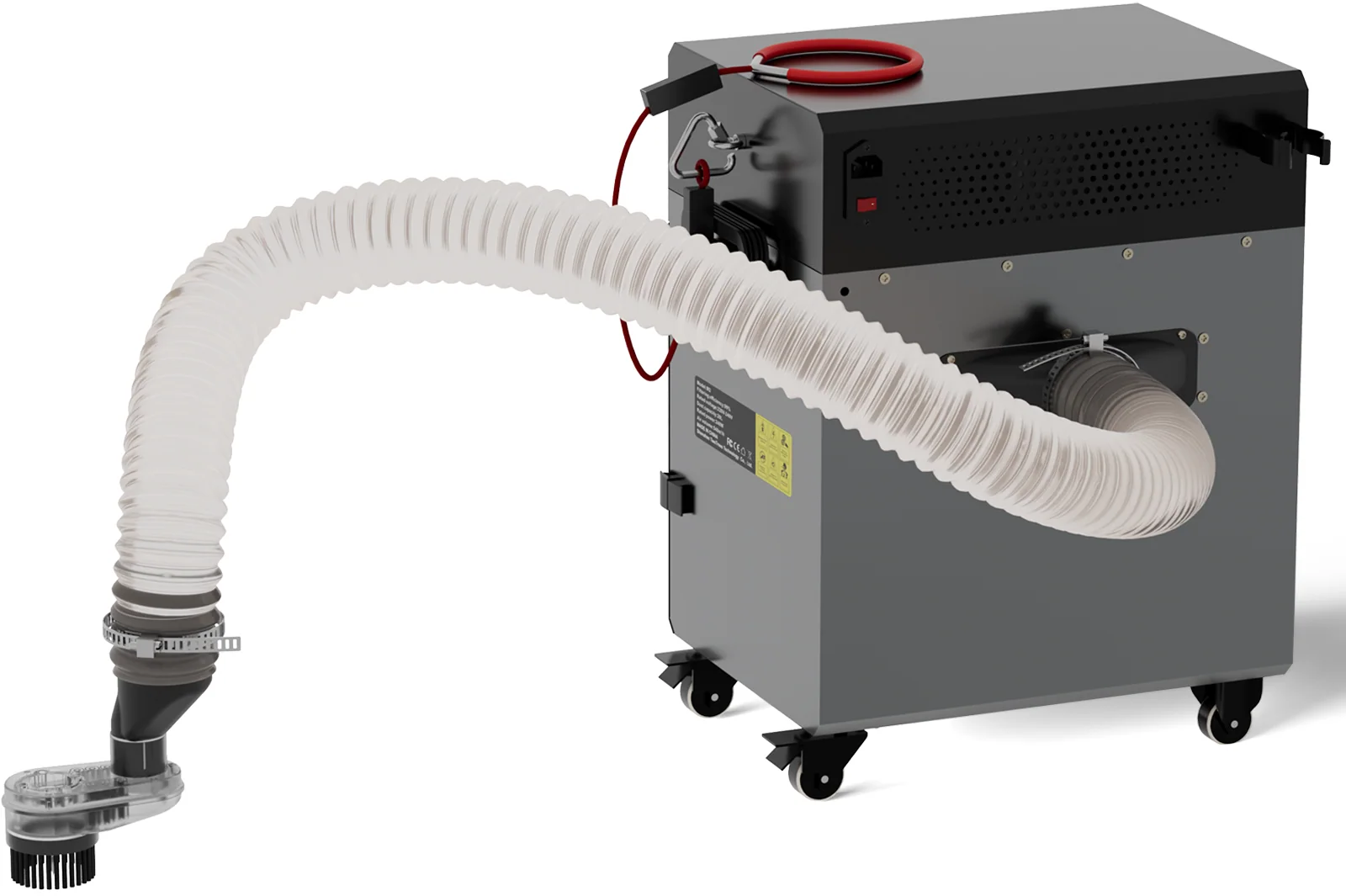 Dammuppsamlaren har stöd för slangar med en diameter på 40 mm, 50 mm, 63 mm och 100 mm och är därför kompatibel med 99 % av alla CNC-fräsar och -gravyrmaskiner på marknaden. Tack vare de anpassningsbara adaptrarna som finns som tillval kan systemet flexibelt anpassas till olika maskinkonfigurationer.